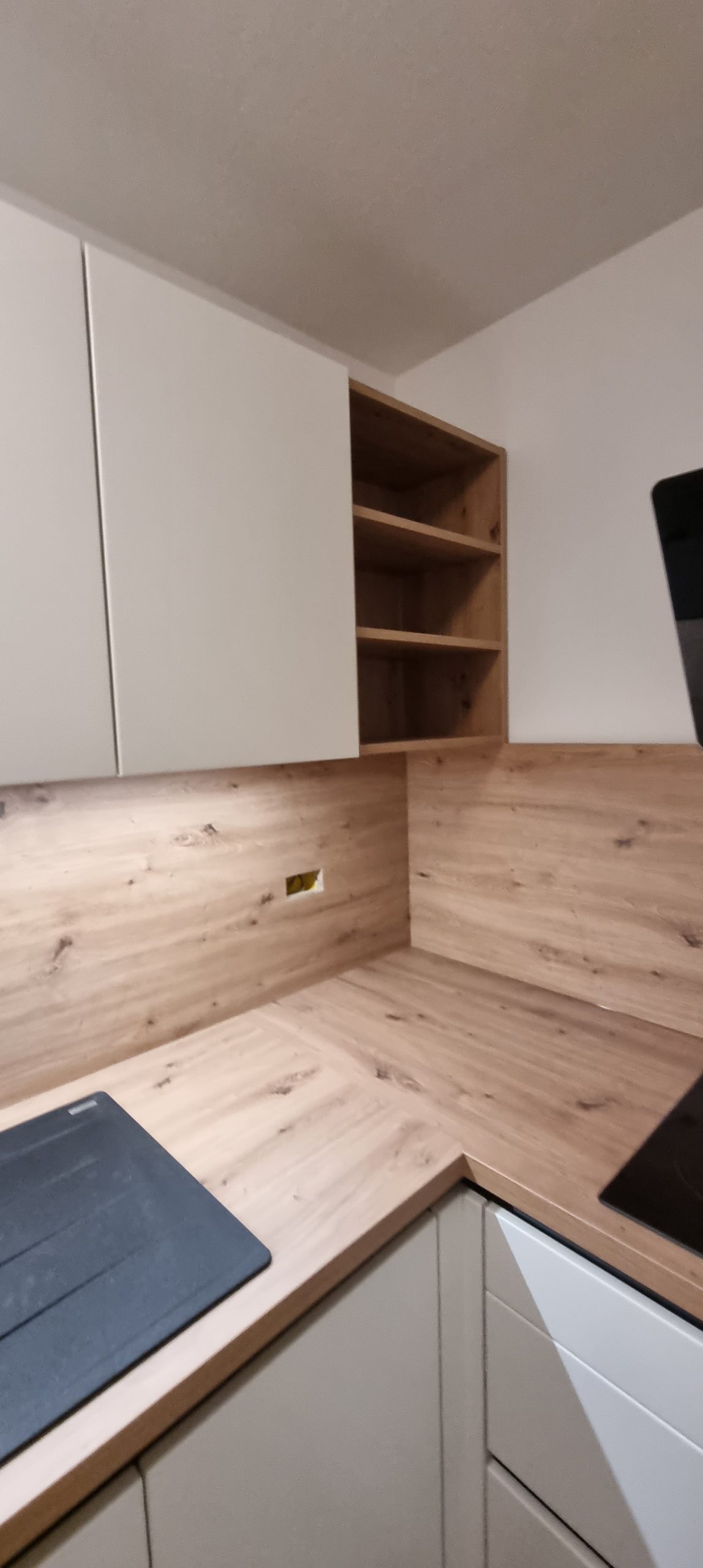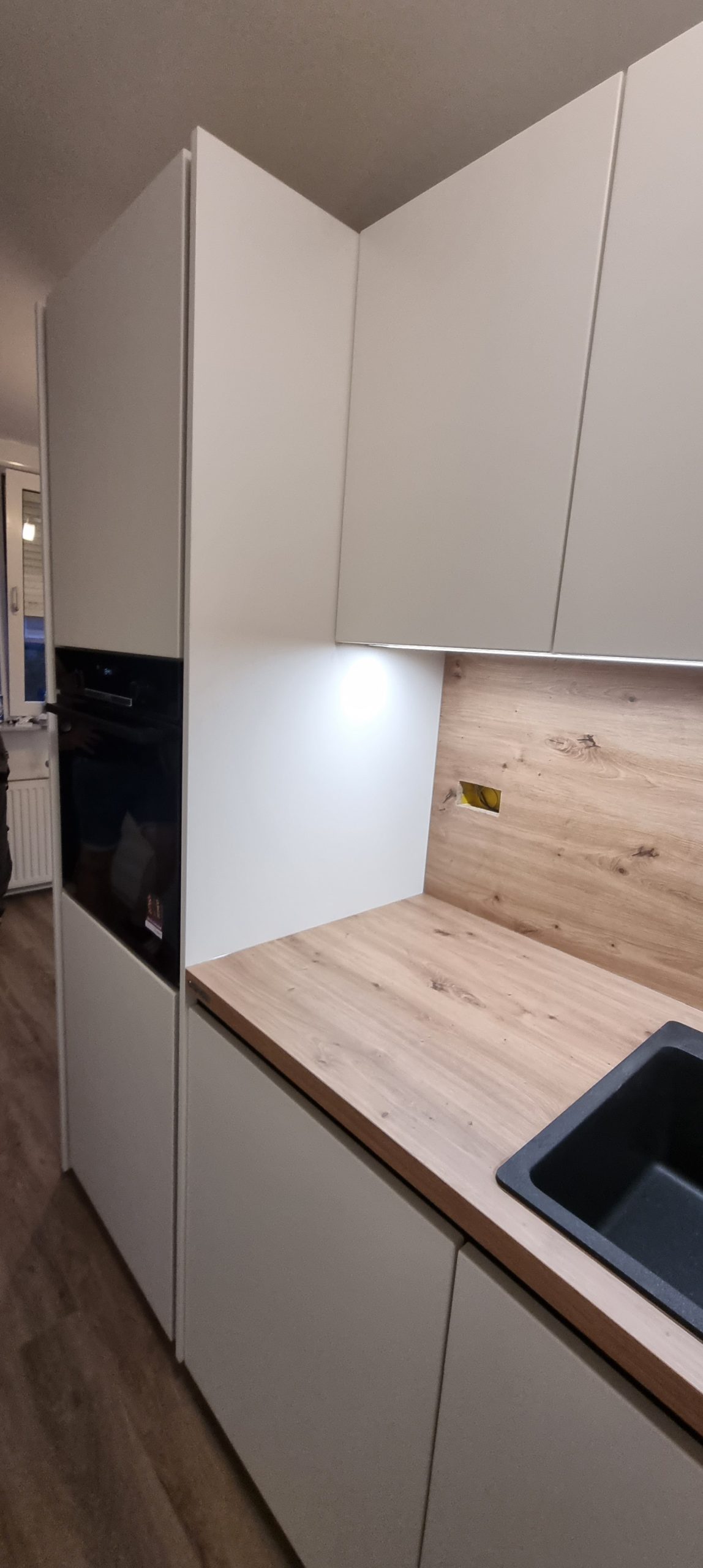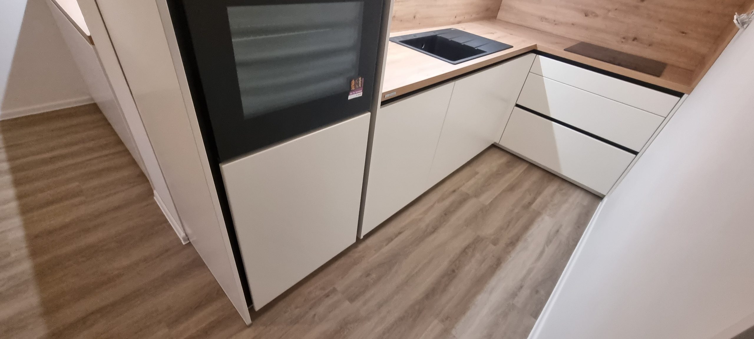 Tokrat smo montirali model Silbermond z belimi frontami in dekorjem lesa Asteiche. Skupaj ustvarjata sveže in domače okolje. Bele fronte v prostor prinesejo zračnost, les pa doda občutek pristnosti.