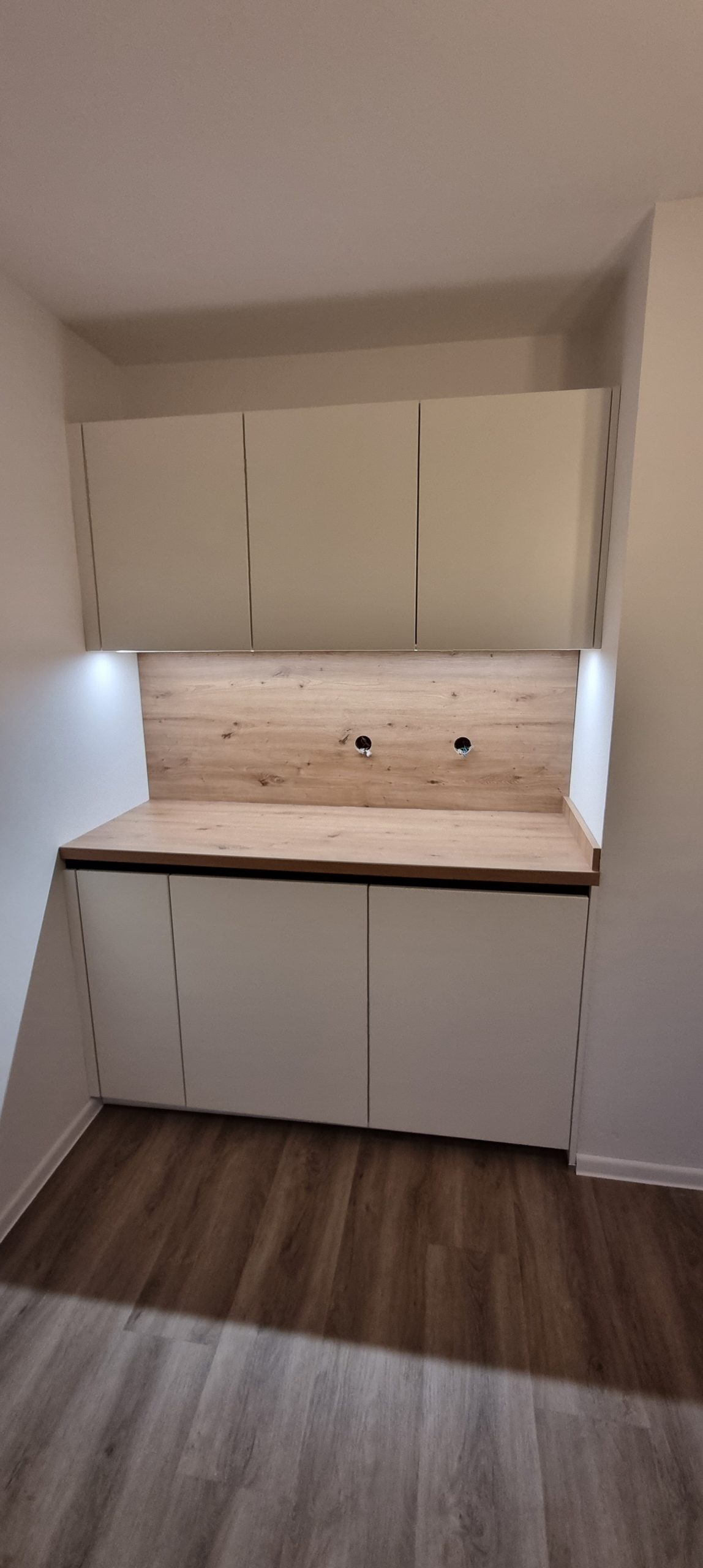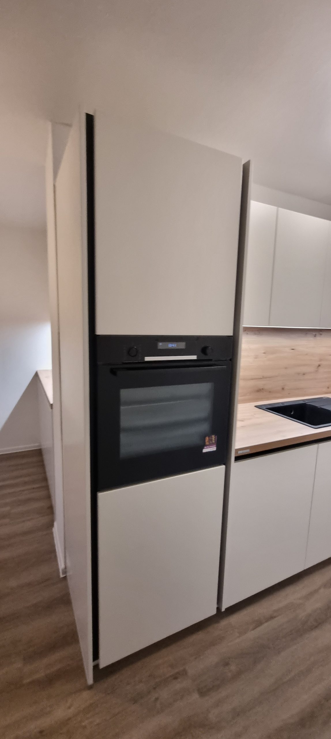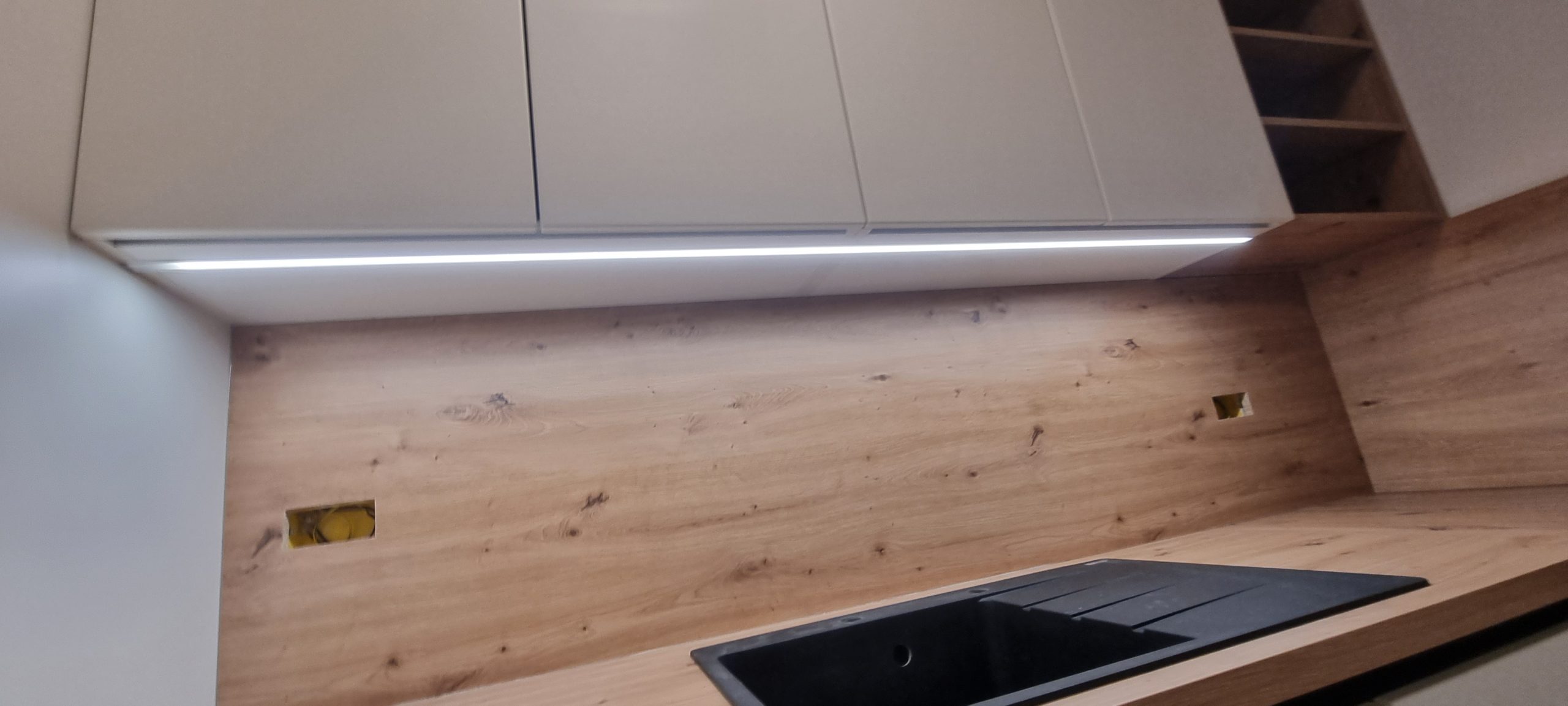 Tokrat smo montirali model Silbermond z belimi frontami in dekorjem lesa Asteiche. Skupaj ustvarjata sveže in domače okolje. Bele fronte v prostor prinesejo zračnost, les pa doda občutek pristnosti.