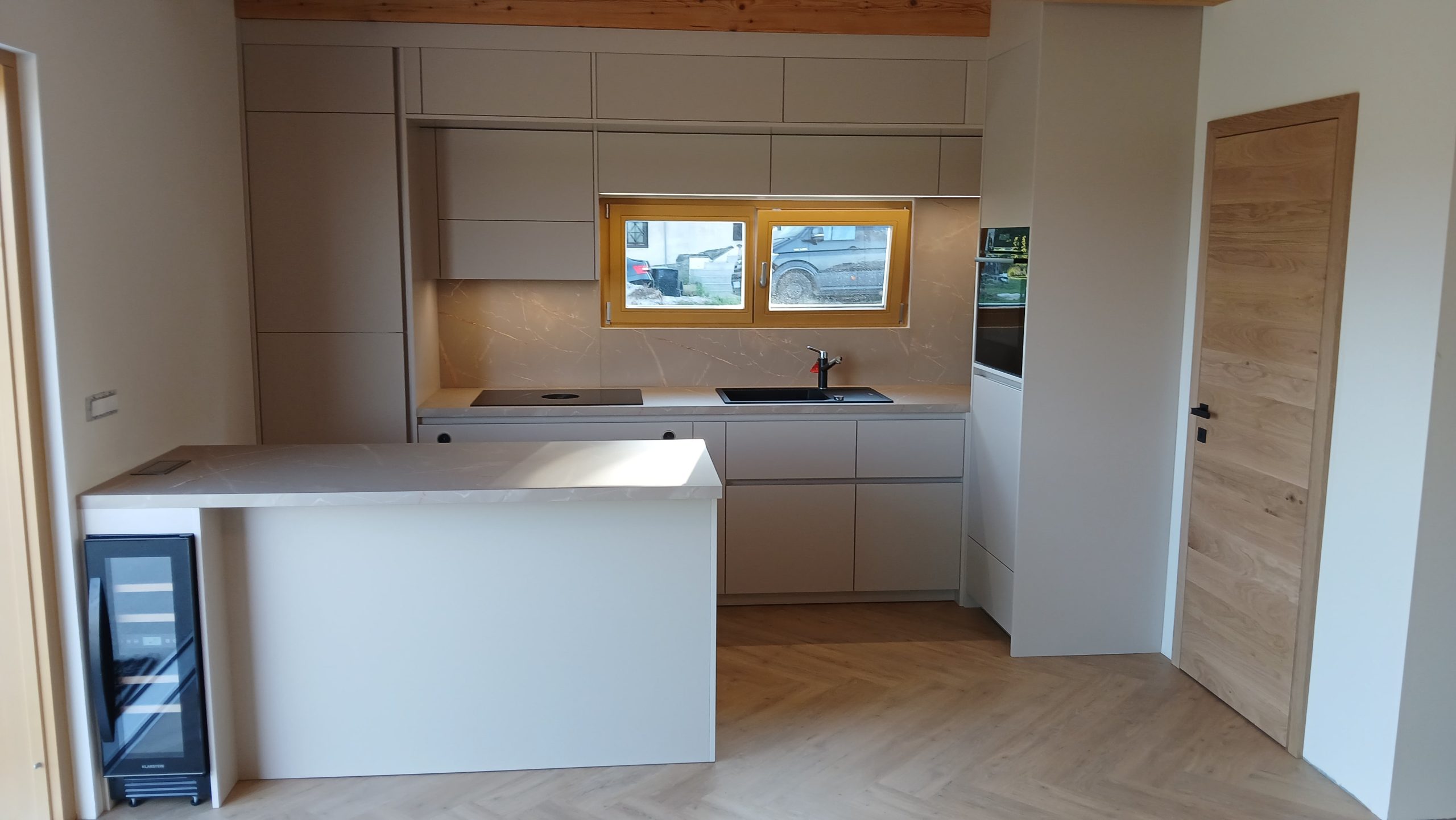 🔹MODEL Silbermond bela sijaj lak + dekor pulta ter stenske obloge BETON mat