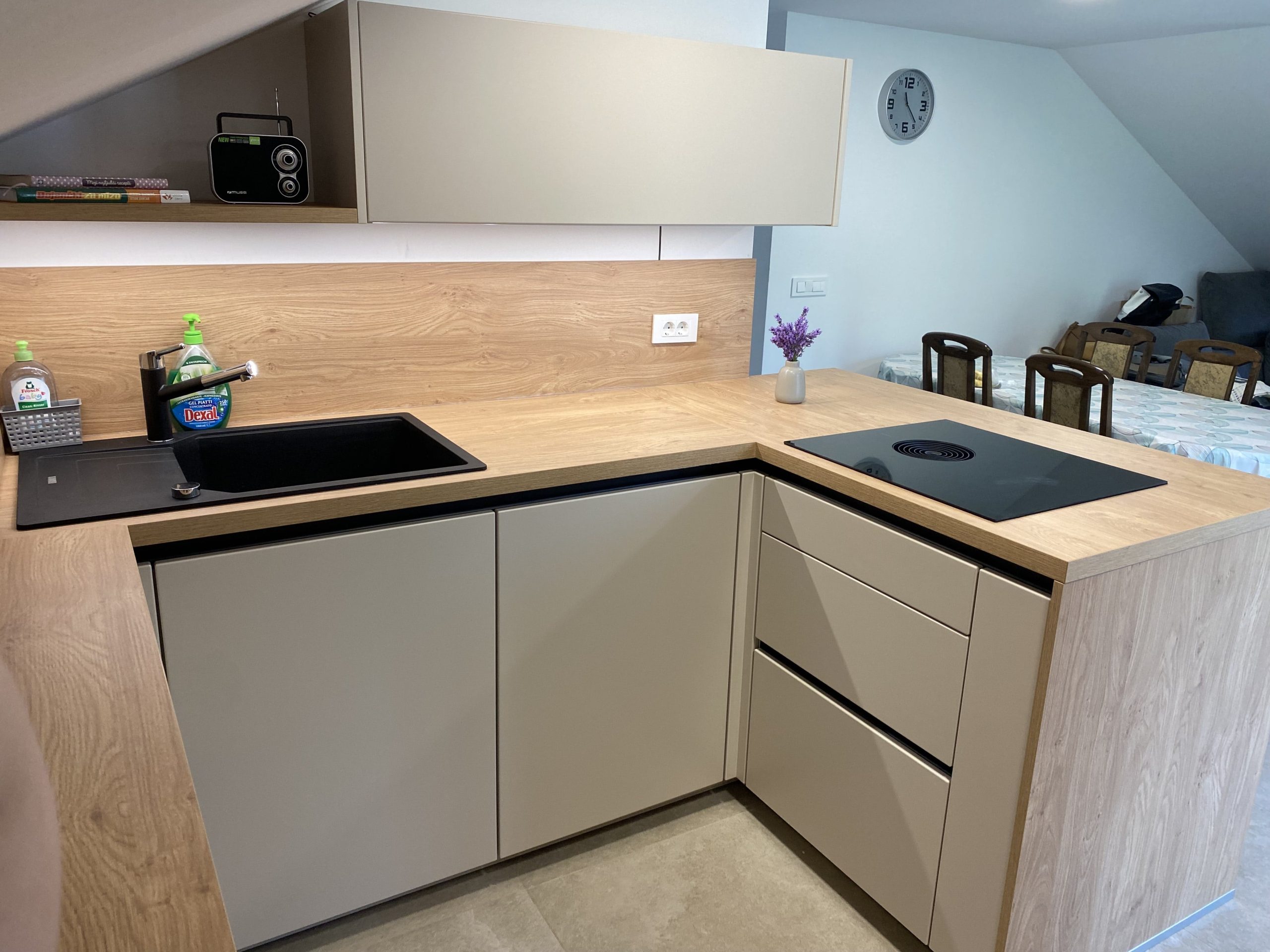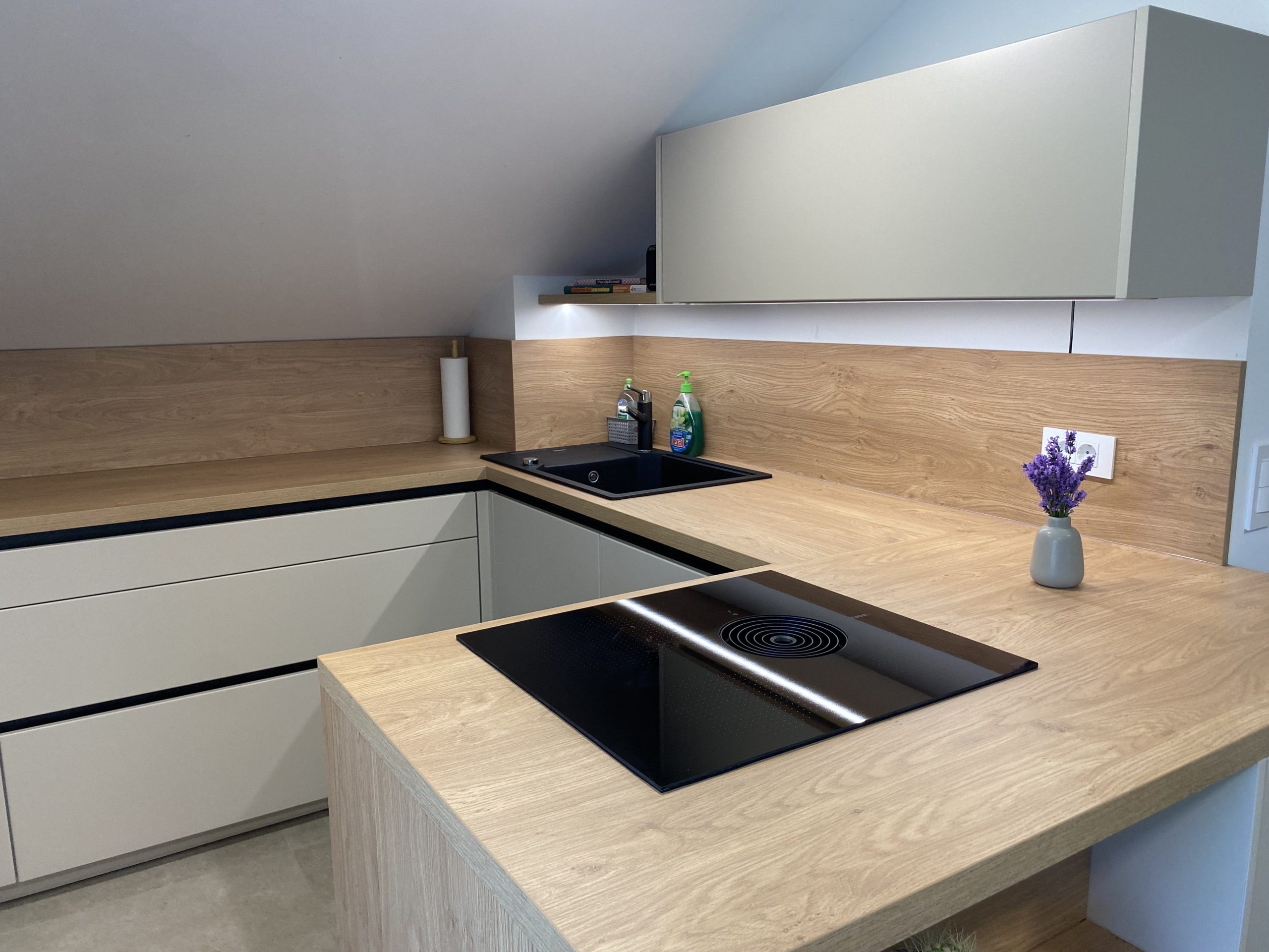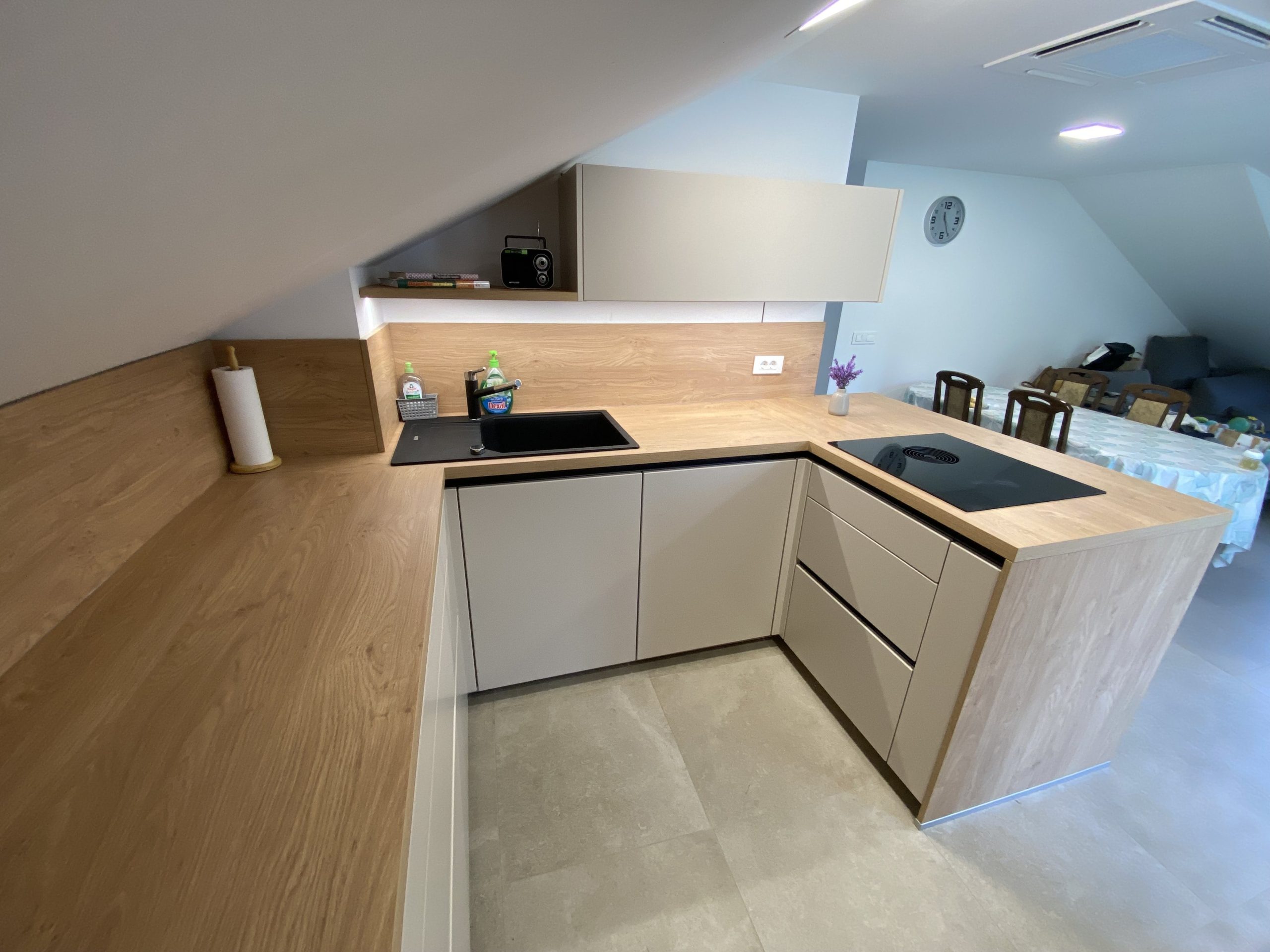 V Laškem smo montirali kuhinjo, ki se popolnoma zlije z značajem mansardnega prostora.