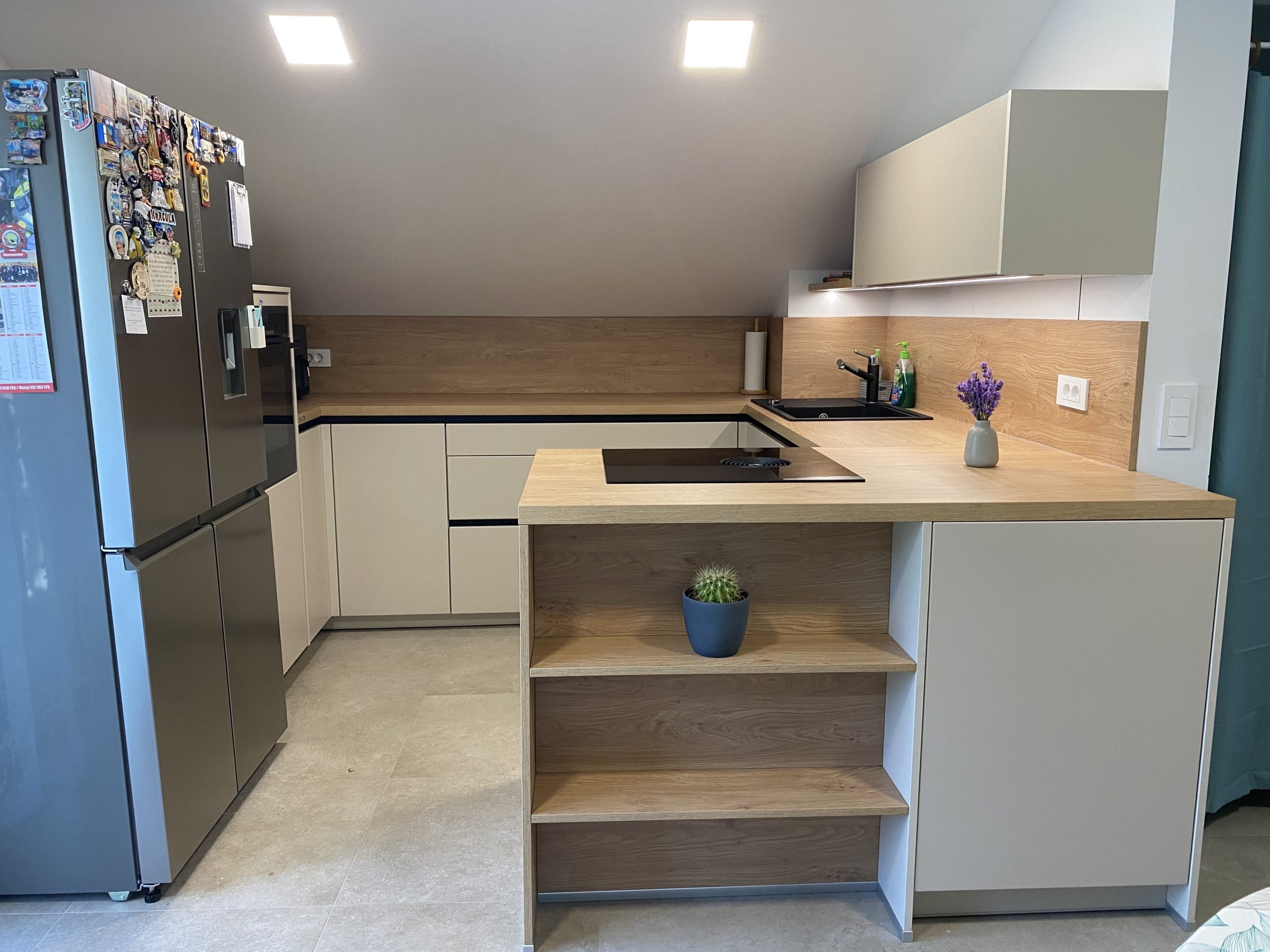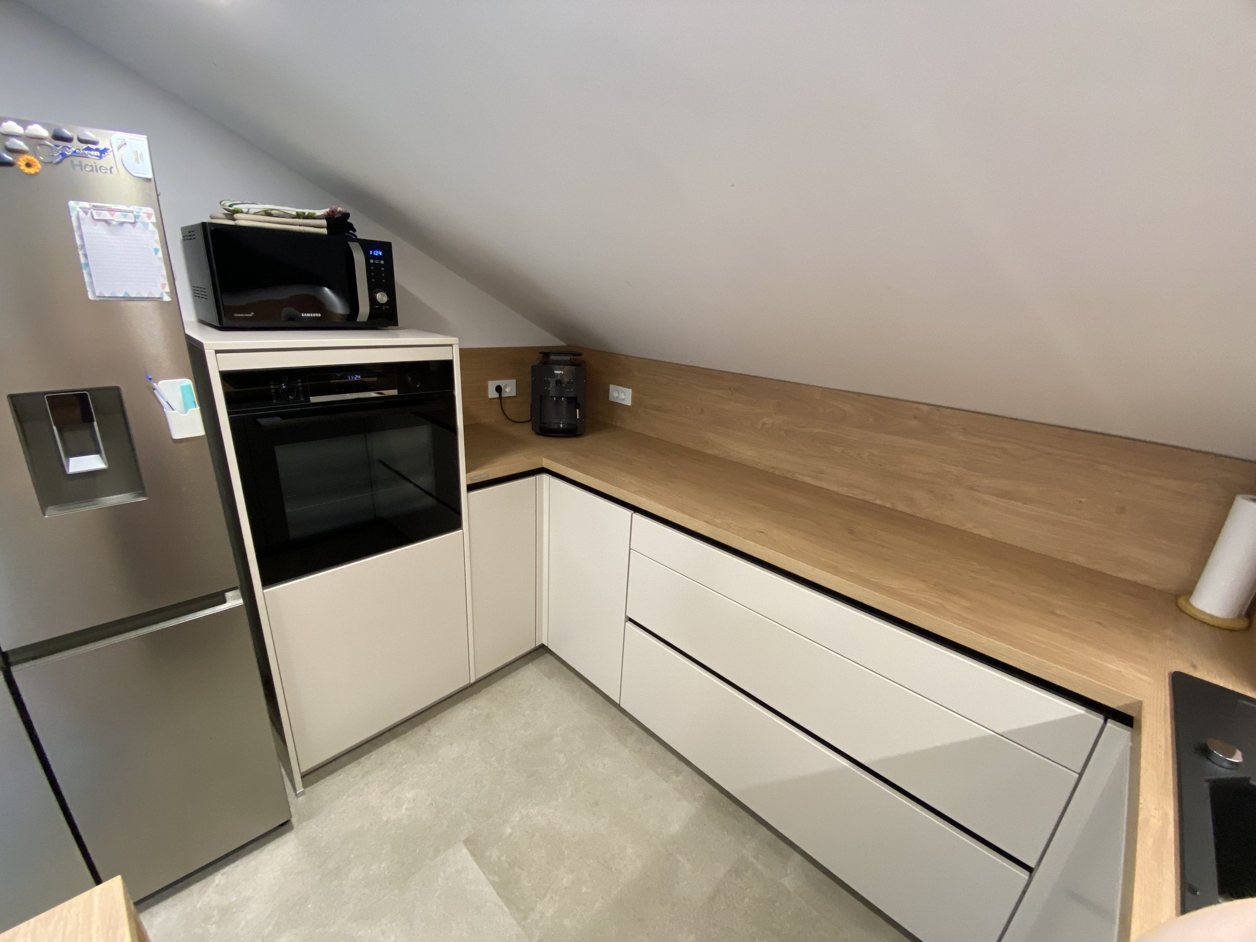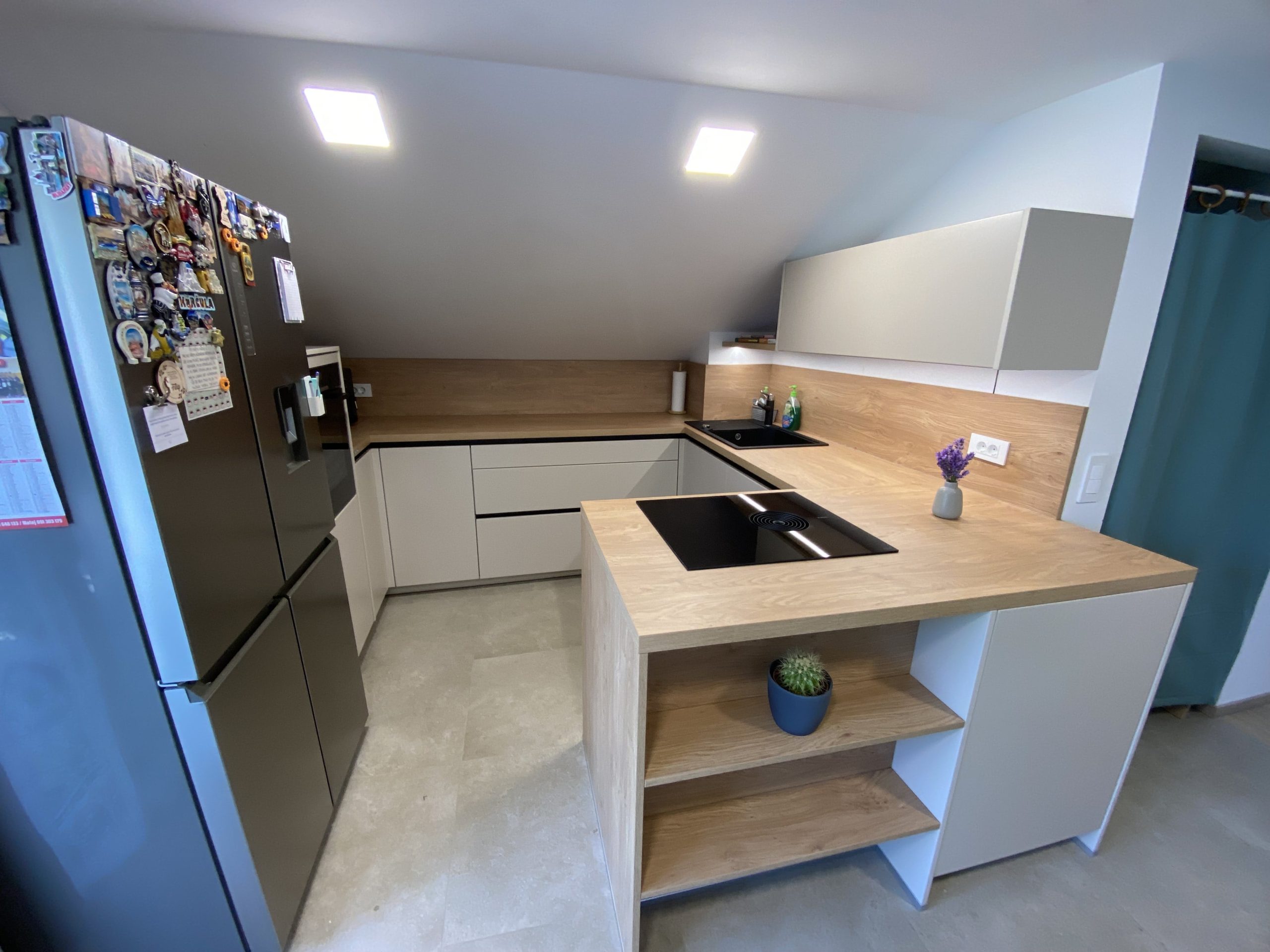 V Laškem smo montirali kuhinjo, ki se popolnoma zlije z značajem mansardnega prostora.