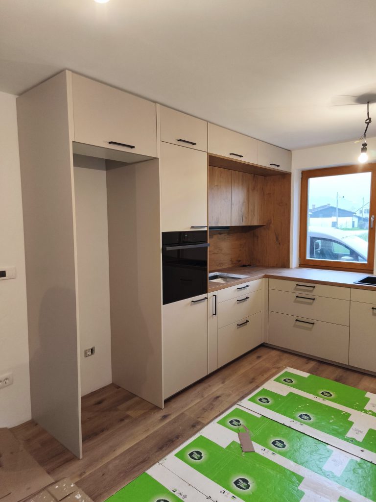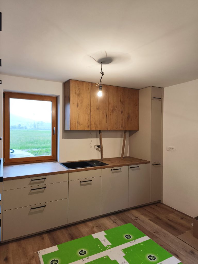 V Vojniku smo stranko presenetili z moderno kuhinjo Amica v L-obliki, ki se odlično prilega prostoru in omogoča funkcionalno uporabo vsakega kotička.