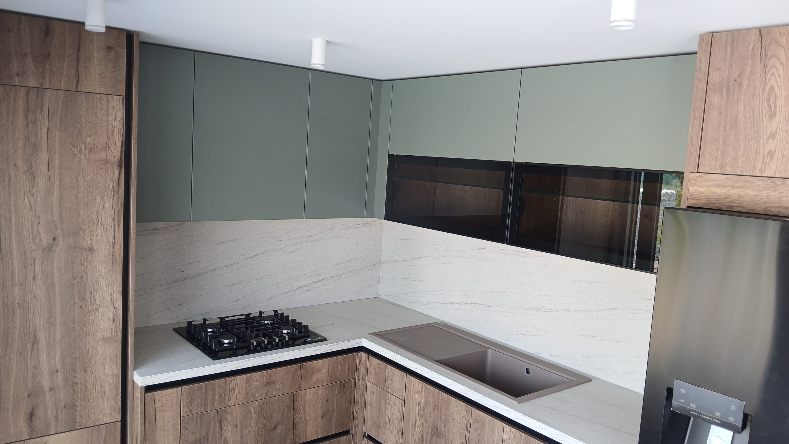Na Ptuju smo tokrat montirali kuhinjo Silbermond, ki s frontami v odtenkih Fjord Grun in Tobaco v prostor vnaša svežino, umirjeno eleganco in pristno toplino. Delovna plošča v odtenku Volano pa s svojo prefinjeno teksturo zaokroži moderen videz.