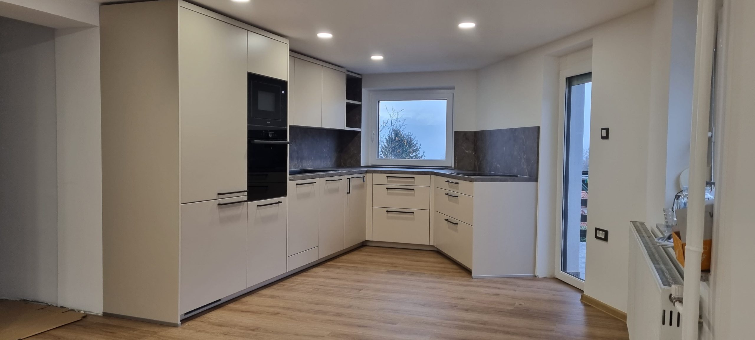 Pri odprtih tlorisih je eden največjih izzivov ta, da kuhinja ne deluje kot ločen, tehničen element prostora, temveč kot naraven del doma. Prav s tem ciljem smo zasnovali kuhinjo LACORTE, ki smo jo montirali v Sevnici.
