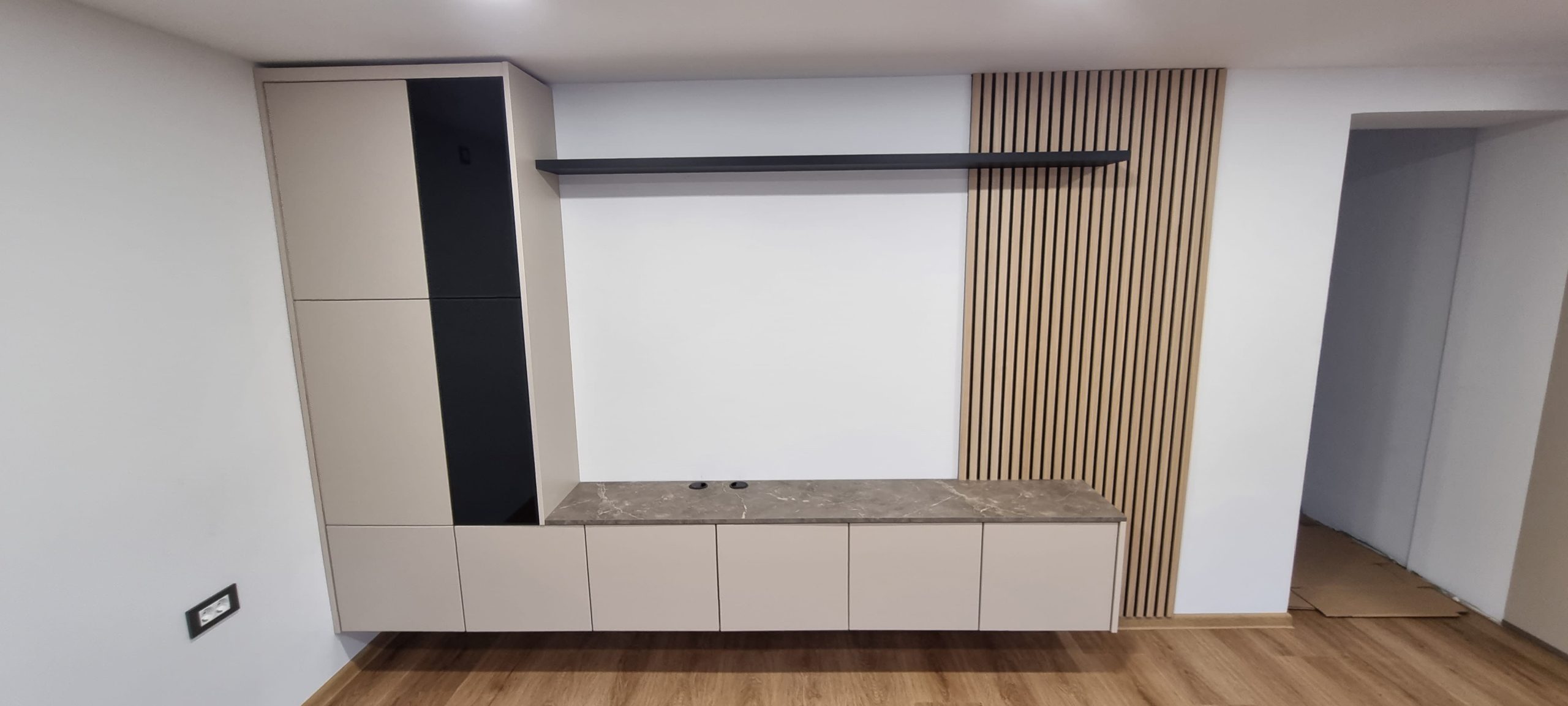 Posebna pozornost je bila namenjena tudi funkcionalnosti. Vgrajen 70-centimetrski hladilnik omogoča več udobja pri vsakodnevni uporabi, razporeditev elementov pa sledi logiki gibanja in potrebam uporabnikov.